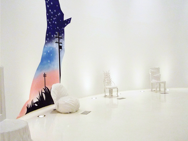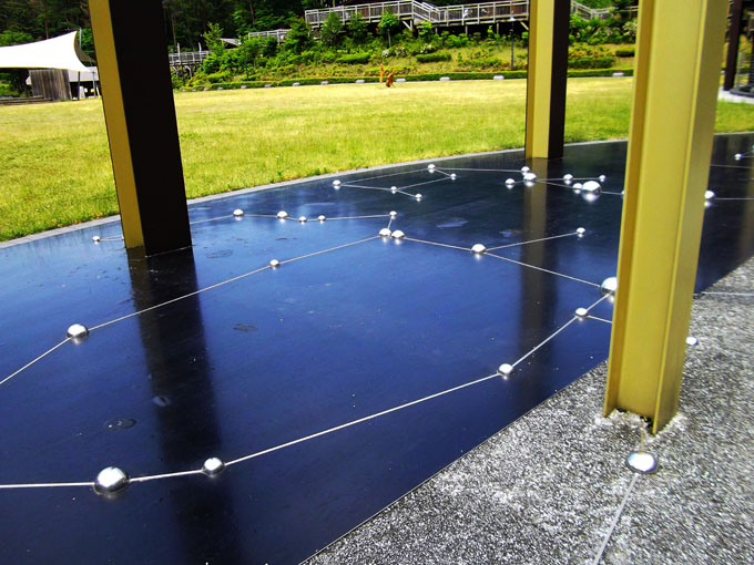 シルバーの玉が床に散らばってると思ったら、星座の形に線が繋がってる。
