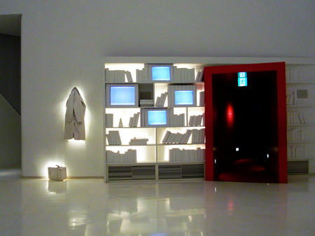 部屋は明るくなったり暗くなったり。4つのテレビでは宮沢賢治に関する映像が流されていました。