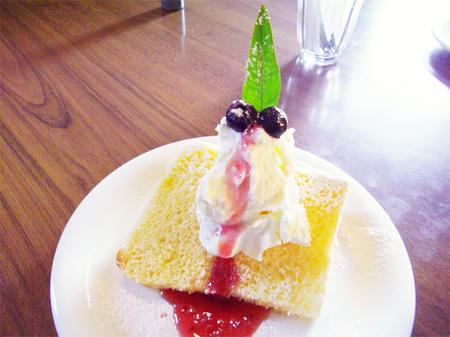 キッシュのプレートを頂いて、デザートにシフォンケーキ。