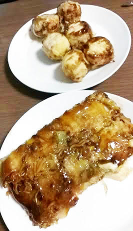露店でたこ焼きと広島焼きを買って夕ご飯。