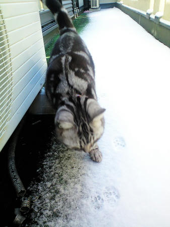 太陽が高い位置に来たら、日向の雪は早速溶けてしまいました。