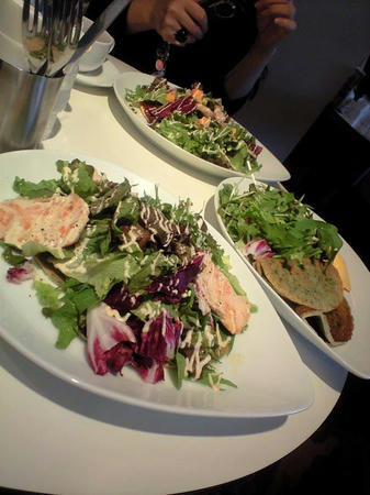 今回は普通のセットにして、鶏肉のサラダとほうれん草のパンケーキを注文。