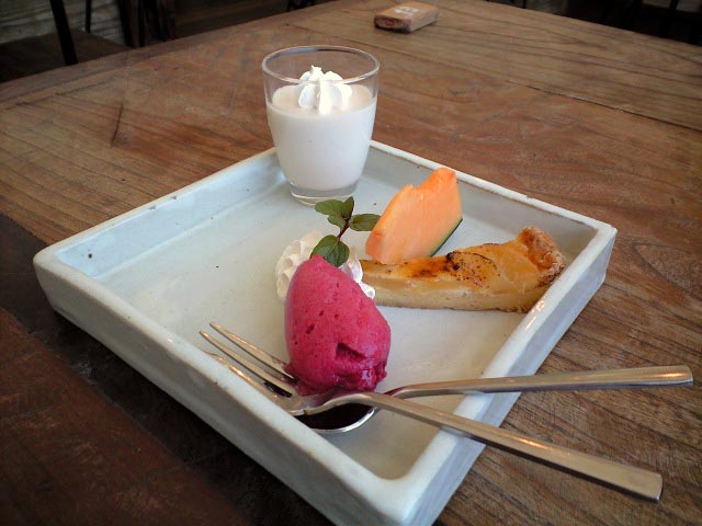 内容はラズベリー(パッションフルーツだったかな?)のアイス、メロン、タルト、プリン。全部美味しかったけど、特にプリンが美味い♪