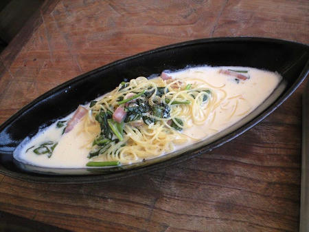 ほうれん草とベーコンのクリームソースのスパゲッティ。