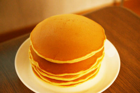 我が家ではパンケーキを1枚の皿に盛って、パンみたいに手で食べています。